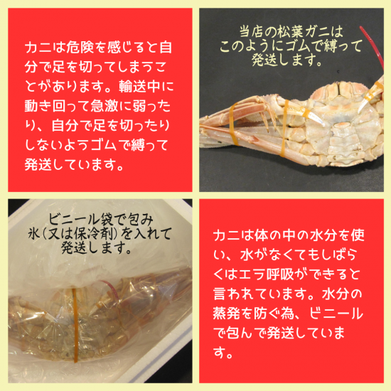 ※「活(生)カニ」とは、生きた状態で販売または発送するカニのことです。